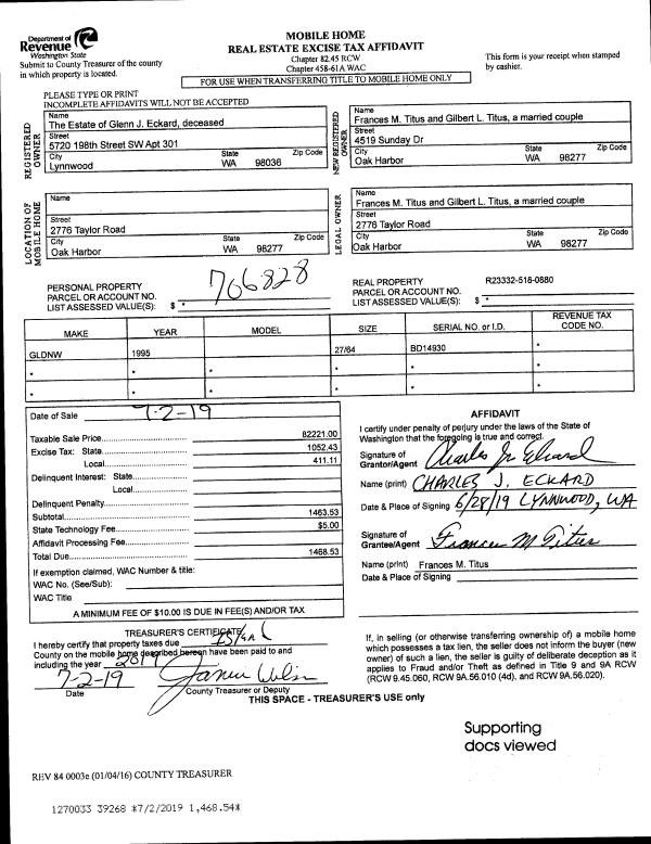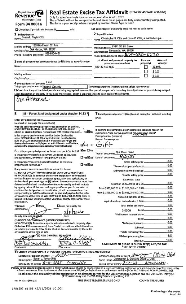 | Mailing Address: | 2474 SW WINCHESTER ST OAK HARBOR, WA 98277 | % Ownership: | 100.0000000000% |