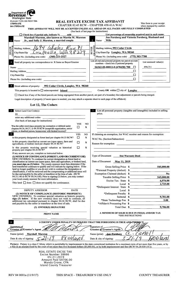 | Mailing Address: | 1651 SE MULBERRY PL #E204 OAK HARBOR, WA 98277 | % Ownership: | 100.0000000000% |