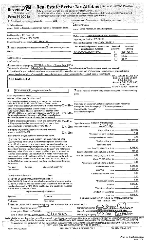 | Mailing Address: | 1621 SW MULBERRY PL D302 OAK HARBOR, WA 98277 | % Ownership: | 100.0000000000% |