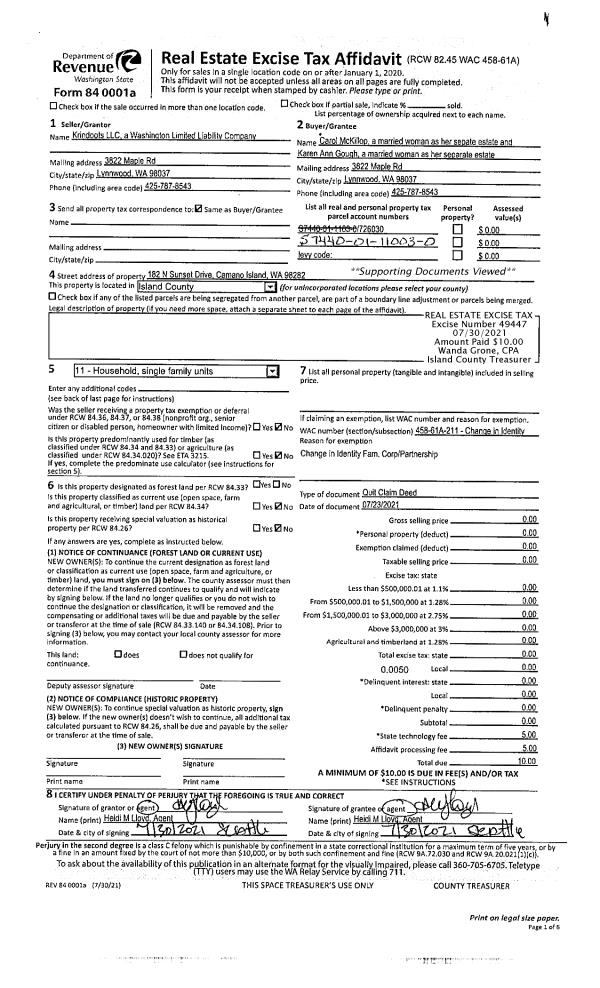 | Mailing Address: | MEAGAN NICOLE LARSON 1052 WOODSIDE LN LANGLEY, WA 98260 | % Ownership: | 100.0000000000% |