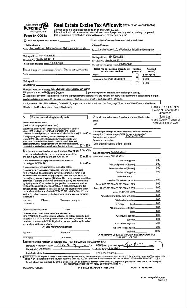 | Mailing Address: | 306 S MAIN ST C3 COUPEVILLE, WA 98239 | % Ownership: | 100.0000000000% |