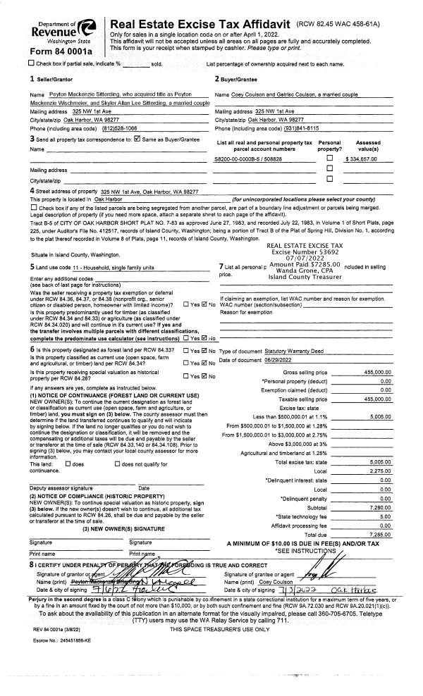 | Mailing Address: | 5224 218TH AVE E BONNEY LAKE, WA 98391 | % Ownership: | 100.0000000000% |