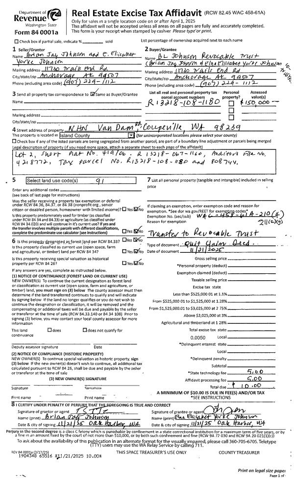 | Mailing Address: | 41 NE MIDWAY BLVD STE 101 OAK HARBOR, WA 98277 | % Ownership: | 100.0000000000% |