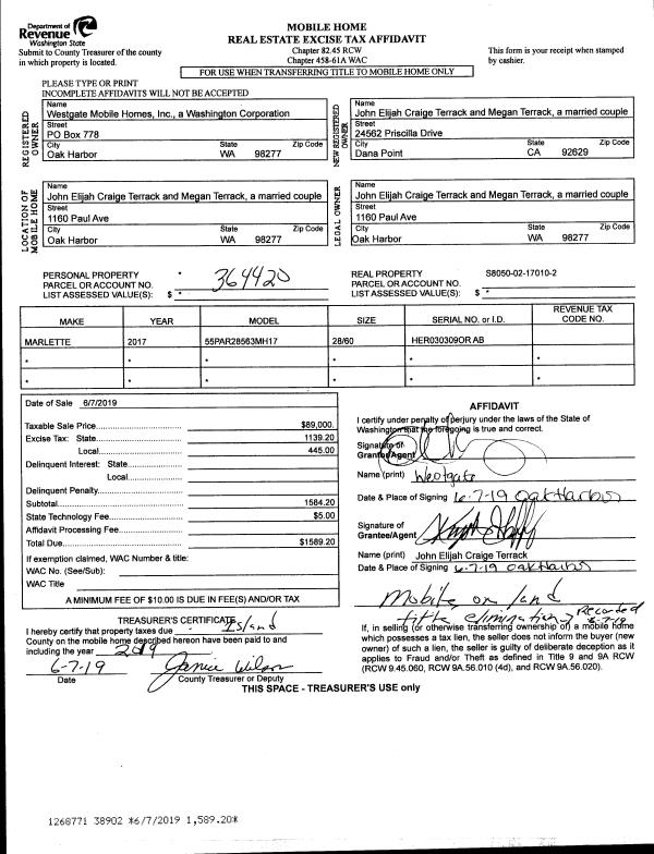 | Mailing Address: | 1218 RACE RD COUPEVILLE, WA 98239 | % Ownership: | 100.0000000000% |