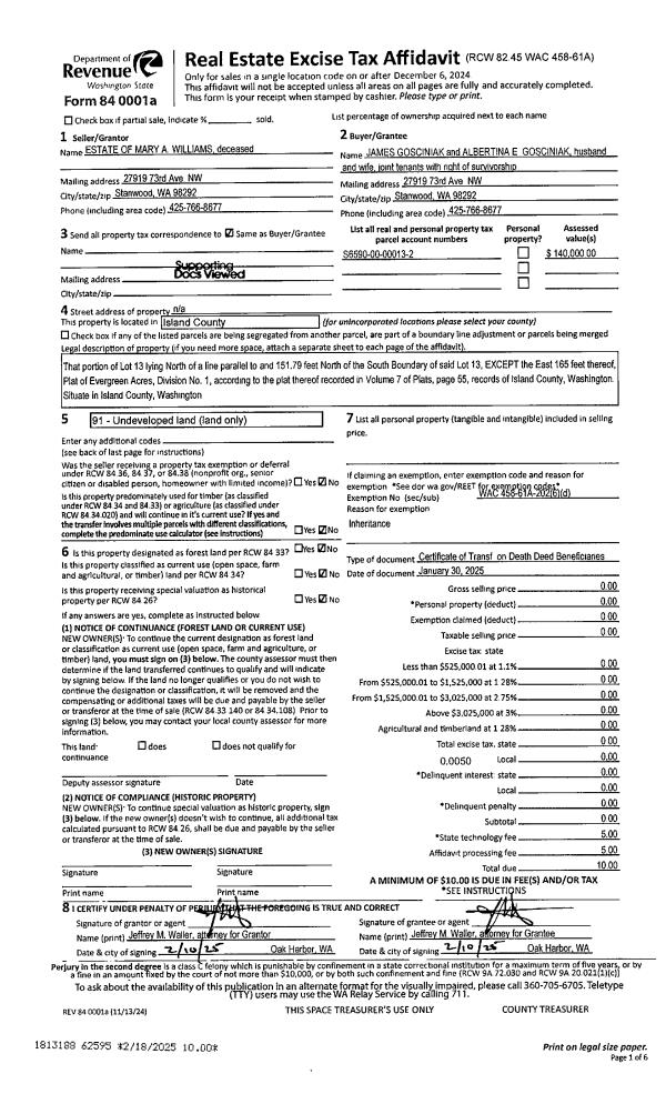 | Property ID: | 82788 | Abbreviated Legal Description: | 14 - IN GL4:BG 100' S OF IP IN C/STREAM WHERE STRM INTER TIDE SLOUGH EXT HI TD W TO WLN GL4 S340' E TO ML NW ALG ML TP E OF W TPB EX BG NW CR OF ABOVE DESC TR N88*E245.38' TPB S1*E150' N88*E475.98' N29*W170.34' S88*W395.22' TPB |