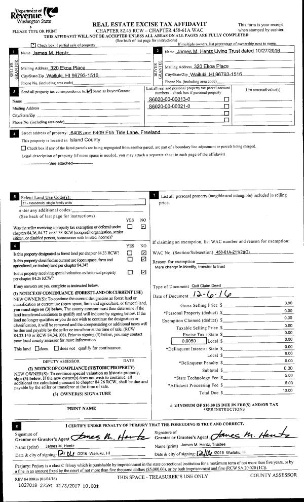 | Mailing Address: | C/O TRENT LOWE 370 NE CAMANO DR STE 5-73 CAMANO ISLAND, WA 98282 | % Ownership: | 100.0000000000% |