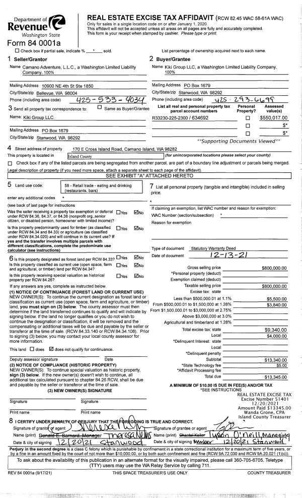 | Mailing Address: | TERESA A ELLIS 30 W WELCHER RD COUPEVILLE, WA 98239 | % Ownership: | 100.0000000000% |