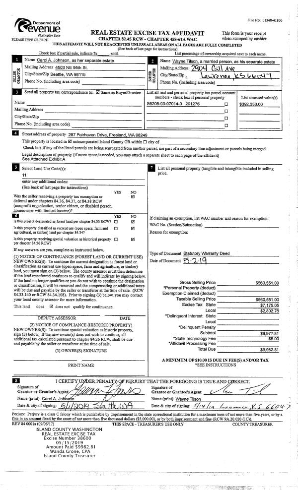 | 1 | 05/30/2019 | WD | Warranty Deed | CAMANO ISLAND INN LLC | ATTAIE, AHMAD | | | $180,000.00 | 38835 | 4464744 |