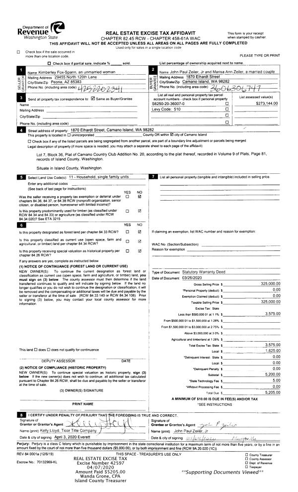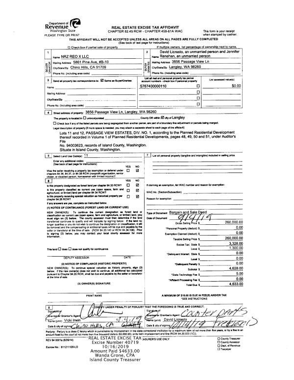 | Mailing Address: | 2126 BREEZY POINT RD S CAMANO ISLAND, WA 98282 | % Ownership: | 100.0000000000% |