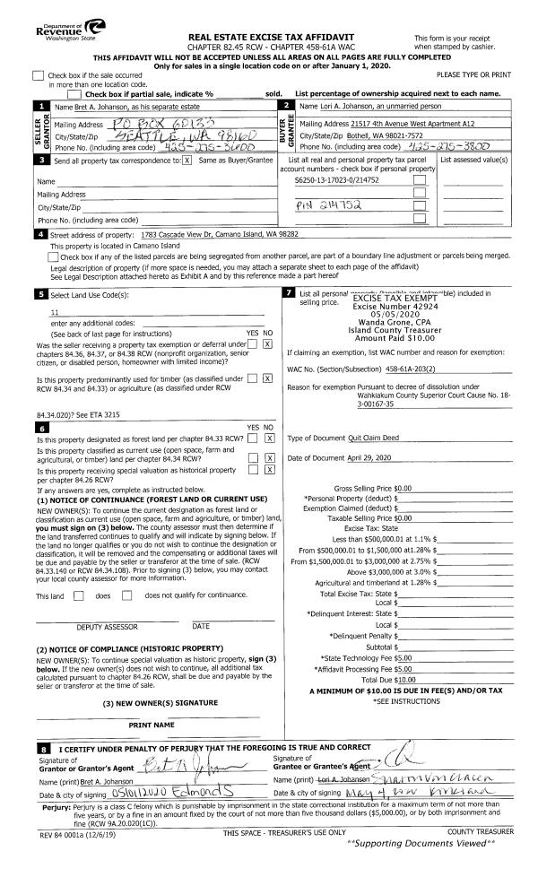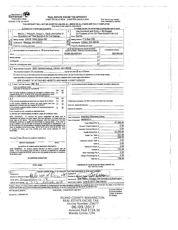 | Mailing Address: | TERESA HACKFORD 122 W MOUNTAIN VIEW RD CAMANO ISLAND, WA 98282 | % Ownership: | 100.0000000000% |