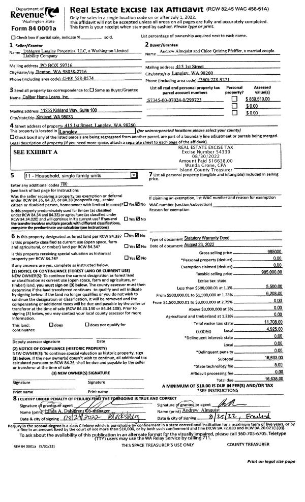 | Mailing Address: | PAMELA COTTON WALDO TRUSTEE 180 W DRY LAKE RD CAMANO ISLAND, WA 98282 | % Ownership: | 100.0000000000% |