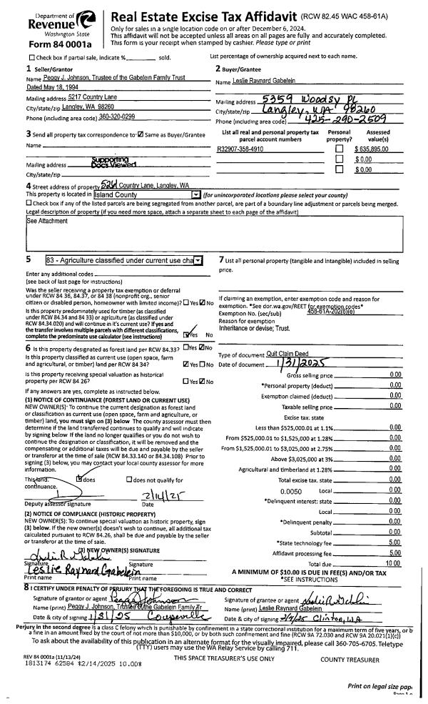 | Mailing Address: | ANNE MARIE GILL 1697 NORTH BLUFF RD COUPEVILLE, WA 98239 | % Ownership: | 100.0000000000% |