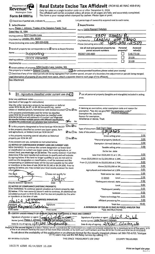 | Mailing Address: | 1675 N BLUFF RD COUPEVILLE, WA 98239 | % Ownership: | 100.0000000000% |