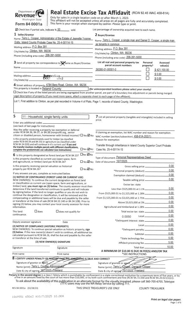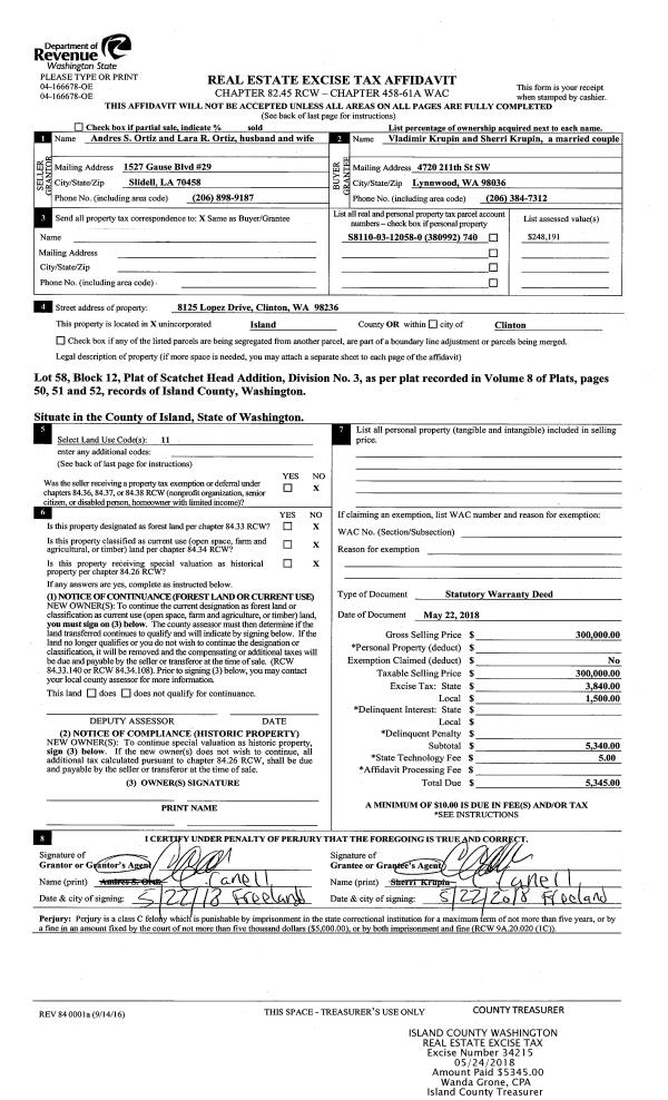 | Mailing Address: | 1851 SW PUTNAM DR OAK HARBOR, WA 98277 | % Ownership: | 100.0000000000% |