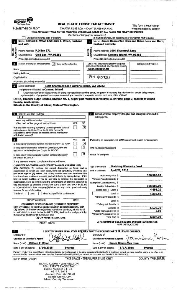 | 2 | 05/18/2018 | WD | Warranty Deed | MITCHELL, RONALD | HONEYMOON BAY COFFEE ROASTERS, INC | | | $140,000.00 | 34290 | 4445235 |
