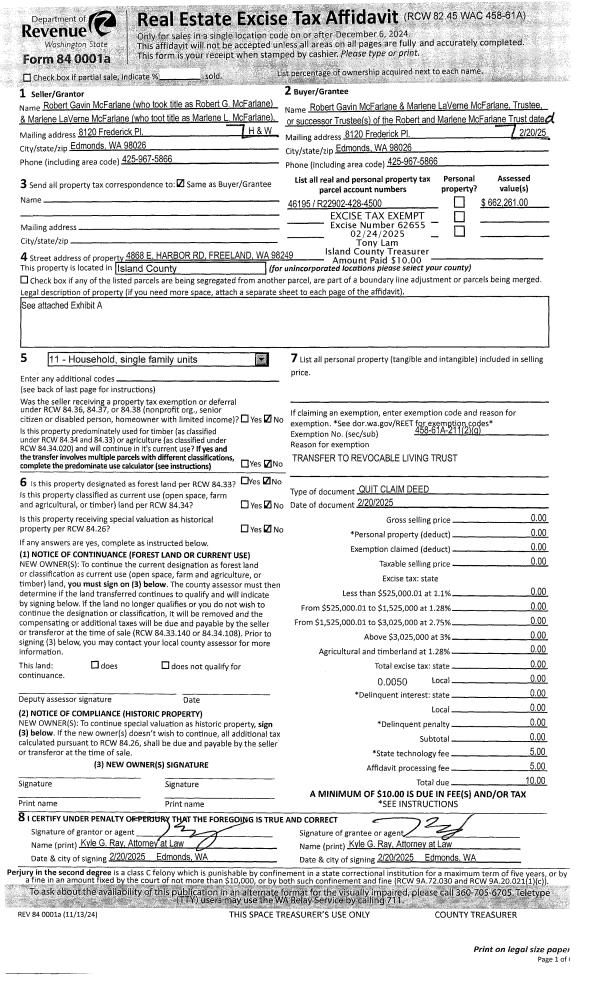 | Mailing Address: | 730 18TH AVE W KIRKLAND, WA 98033 | % Ownership: | 100.0000000000% |