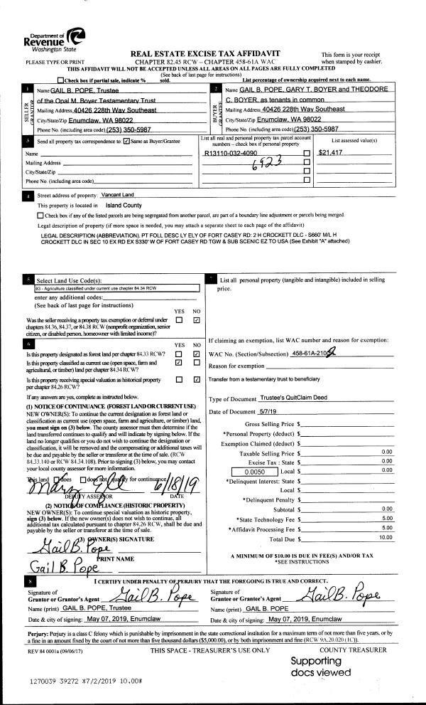 | Mailing Address: | MARION G M LEACH 2336 STRAWBERRY POINT ROAD OAK HARBOR, WA 98277 | % Ownership: | 100.0000000000% |