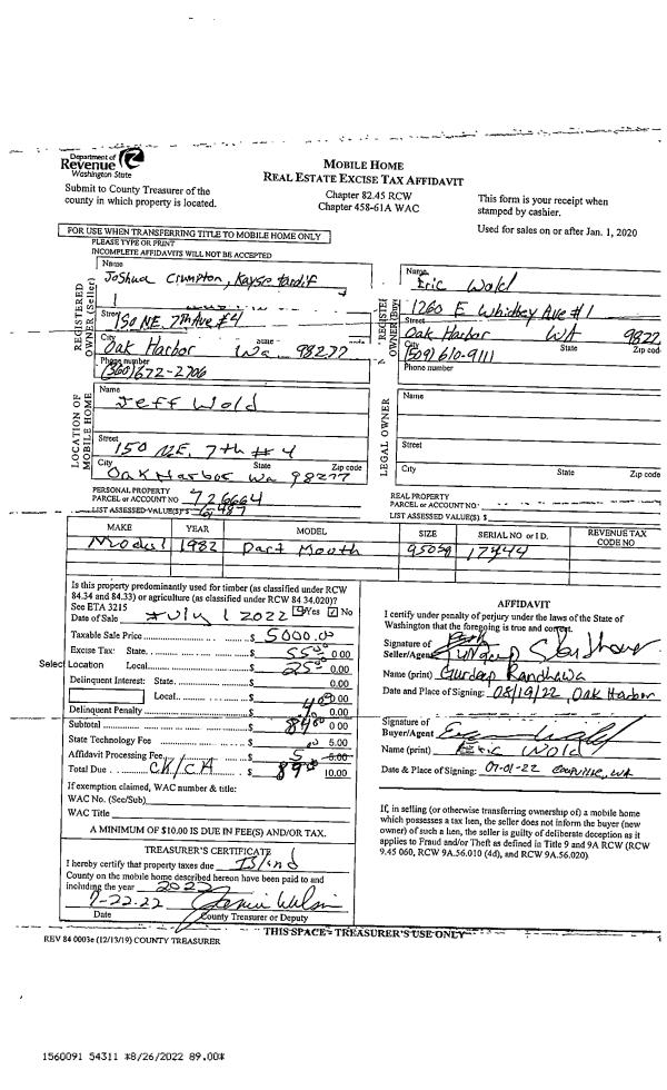 | Mailing Address: | CHELSI MARIE GRESS 2390 TURNING LEAF LANE OAK HARBOR, WA 98277 | % Ownership: | 100.0000000000% |