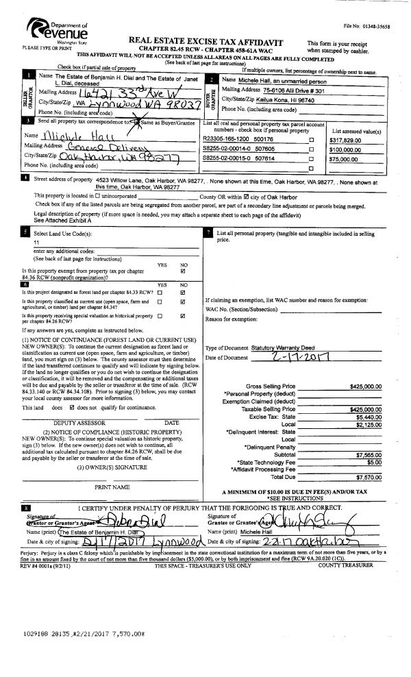 | Mailing Address: | TINA MARIE DYKEMA 2349 LAKE FOREST DR OAK HARBOR, WA 98277 | % Ownership: | 100.0000000000% |
