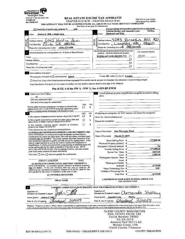 | Mailing Address: | STEVE WILLIAM HILL II 833 NW CAMANO DR CAMANO ISLAND, WA 98282 | % Ownership: | 100.0000000000% |