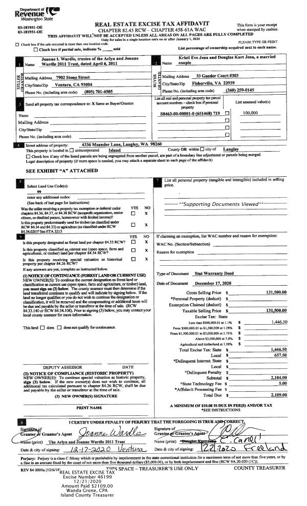 | Mailing Address: | 340 BIG CEDAR LN COUPEVILLE, WA 98239 | % Ownership: | 100.0000000000% |