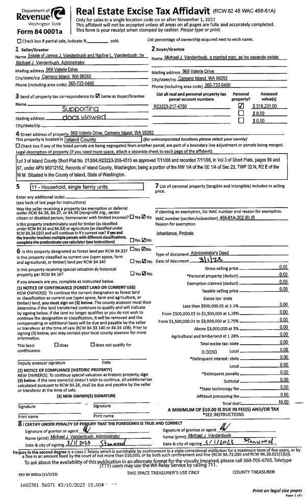 | Mailing Address: | 957 N SUNSET DR CAMANO ISLAND, WA 98282-7345 | % Ownership: | 100.0000000000% |