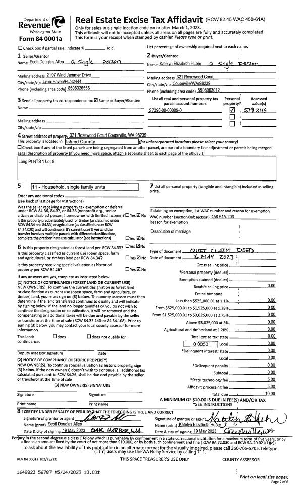 | Mailing Address: | 438 ISLAND VIEW DR CAMANO ISLAND, WA 98282-8613 | % Ownership: | 100.0000000000% |