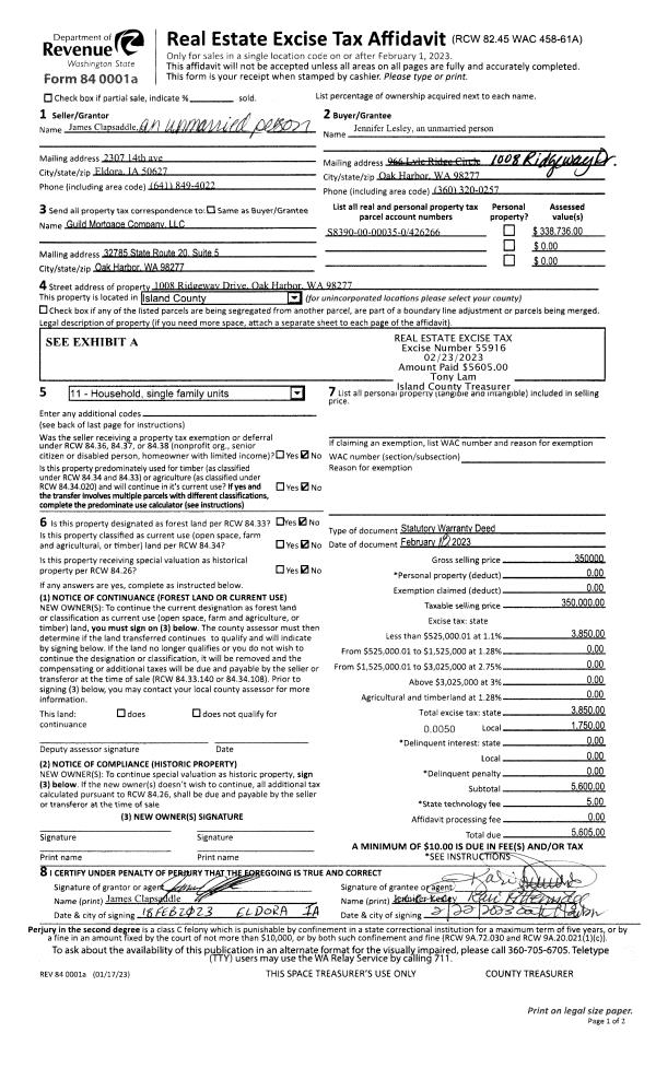| Mailing Address: | JEANNE C MACK 1104 BAYSHORE DR CAMANO ISLAND, WA 98282 | % Ownership: | 100.0000000000% |