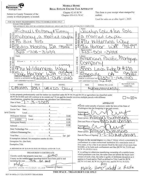 | 1 | 06/15/2023 | EZ | Easement | KORZAN, KRISTI ROCHELLE | TOWN OF COUPEVILLE | | | $0.00 | 57208 | 4561839 |