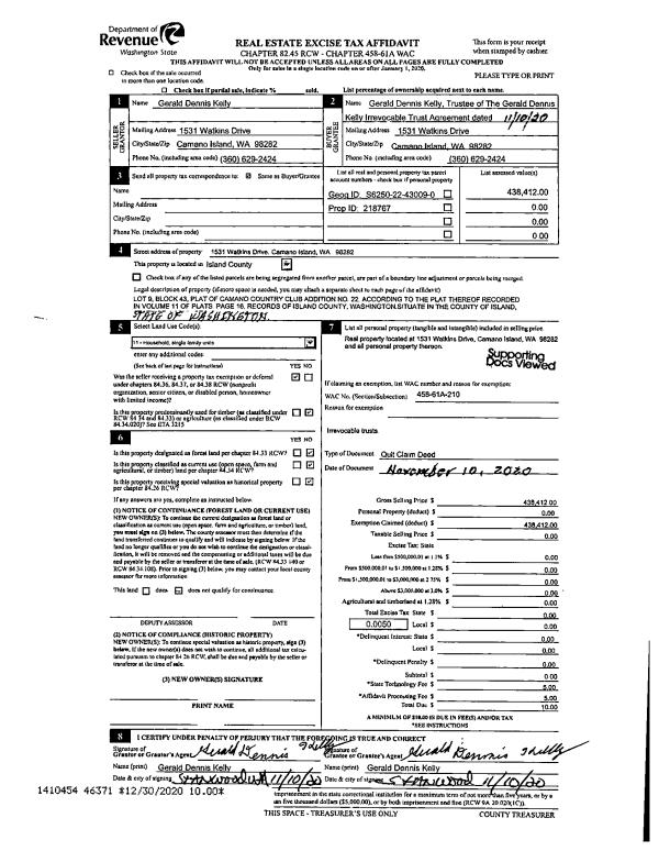 | Mailing Address: | 294 BIG CEDAR LN COUPEVILLE, WA 98239 | % Ownership: | 100.0000000000% |