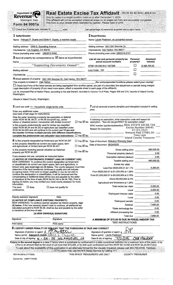 | 1 | 06/16/2023 | EZ | Easement | HANSON, HELENE R | TOWN OF COUPEVILLE | | | $0.00 | 57209 | 4561838 |