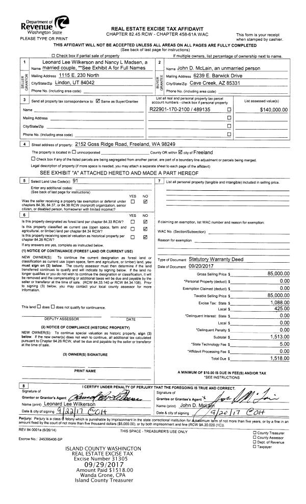 | Mailing Address: | 570 WAYNES RIDGE CIRCLE CAMANO ISLAND, WA 98282 | % Ownership: | 100.0000000000% |
