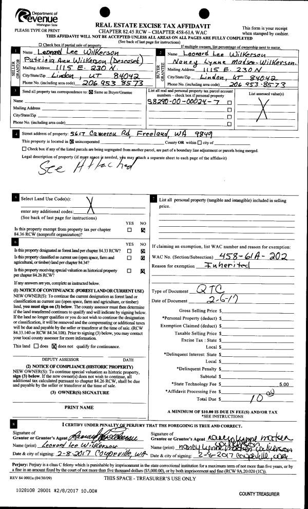 | Mailing Address: | 360 DODGE RD CAMANO ISLAND, WA 98282 | % Ownership: | 100.0000000000% |