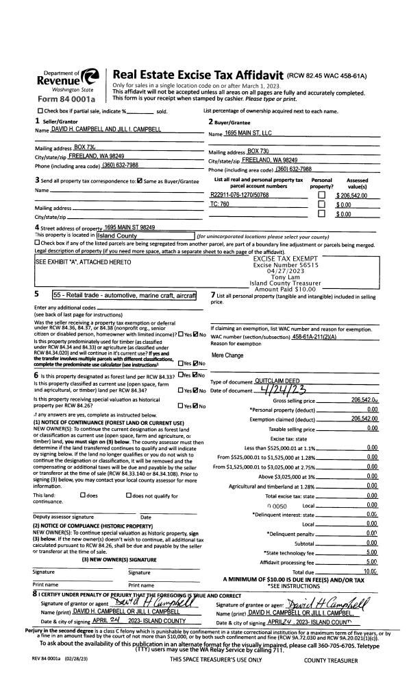 | Mailing Address: | SHERILYN FLAKE 465 THUMPER LN CAMANO ISLAND, WA 98282 | % Ownership: | 100.0000000000% |