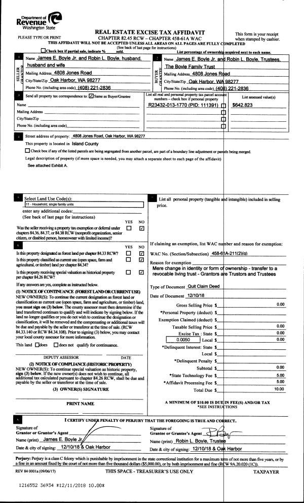 | Mailing Address: | LAURA FERGUSON FIGLEY 660 DODGE RD CAMANO ISLAND, WA 98282 | % Ownership: | 100.0000000000% |