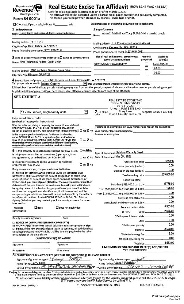 | 1 | 01/13/2023 | WD | Warranty Deed | FORSBERG, AREN-EARL REINHOLD | FIGLEY, DAVID | | | $590,000.00 | 55624 | 4555735 |