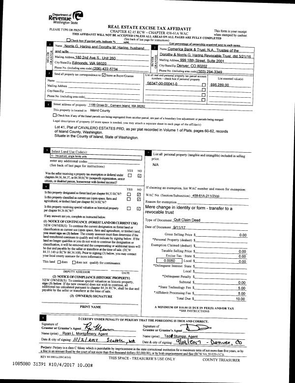 | Mailing Address: | CARRIE WILLIAMS 450 MILE HIGH DR CAMANO ISLAND, WA 98282 | % Ownership: | 100.0000000000% |