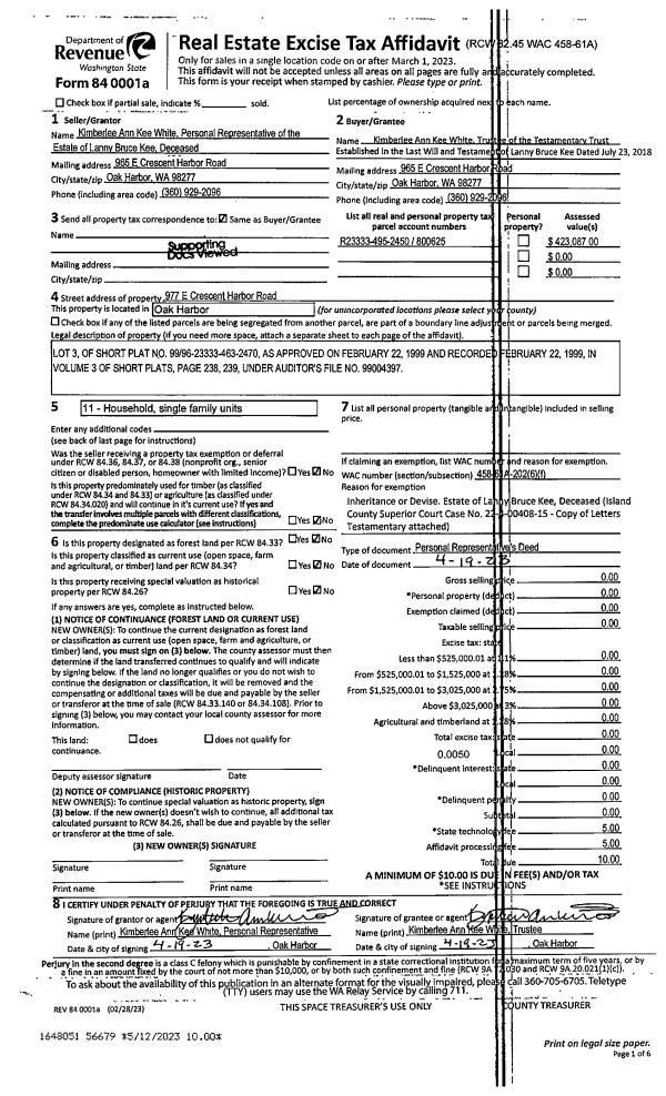 | Mailing Address: | 673 MAJESTIC VIEW LN CAMANO ISLAND, WA 98282-5750 | % Ownership: | 100.0000000000% |