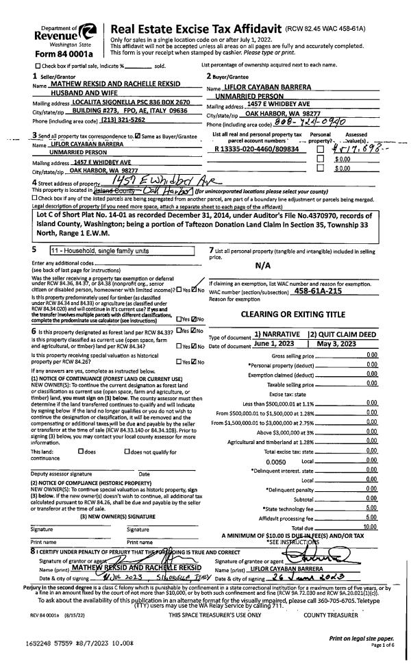 | Mailing Address: | 657 MAJESTIC VIEW LN CAMANO ISLAND, WA 98282 | % Ownership: | 100.0000000000% |
