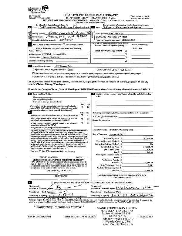 | 2 | 02/21/2019 | WD | Warranty Deed | LEMPE, WILLIAM K | HANSEN, CHERRI | | | $22,036.00 | 37667 | 4459634 |