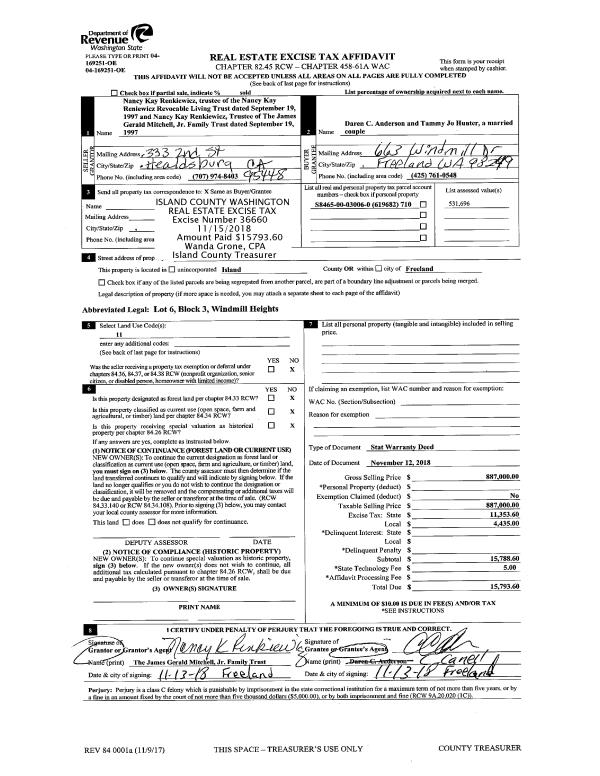 | Mailing Address: | ANNE NANCY CRIWELL HARVEY TTEE 1075 BURCHELL RD COUPEVILLE, WA 98239 | % Ownership: | 100.0000000000% |