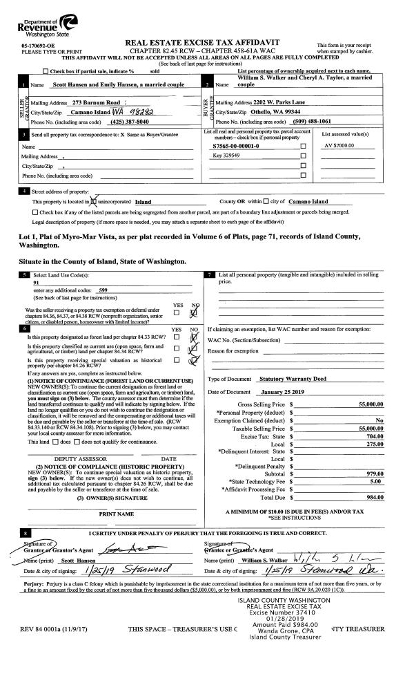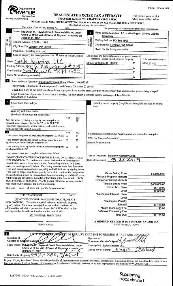 | 2 | 02/06/2019 | SHERIFFD | Sheriff Deed | ISLAND COUNTY SHERIFF | FEDERAL NATIONAL MORTGAGE ASSOCIATION | | | $259,000.00 | 37511 | 4458872 |