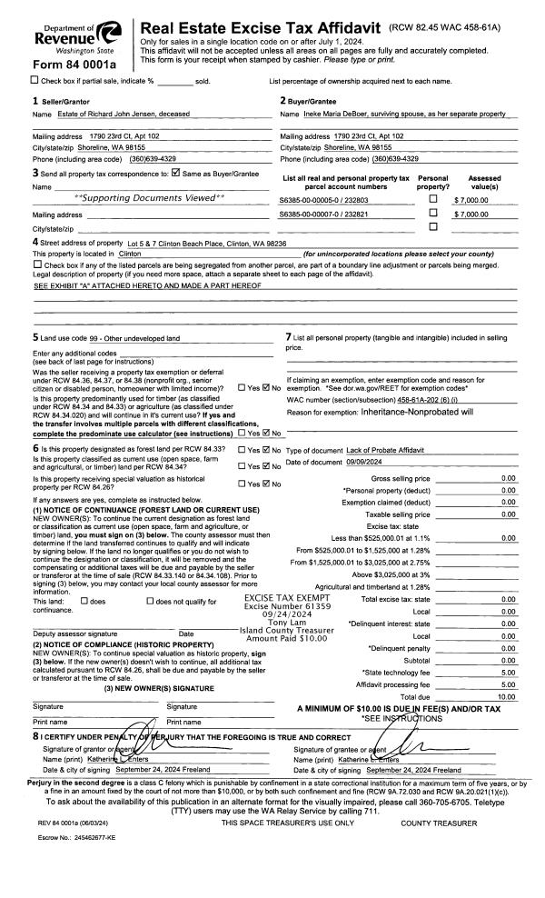 | Mailing Address: | CELESTE M FRANSSEN 4140 JONES RD OAK HARBOR, WA 98277-7711 | % Ownership: | 100.0000000000% |