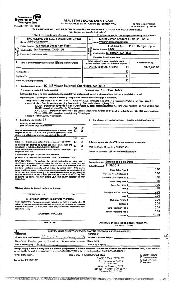 | Mailing Address: | 4166 JONES RD OAK HARBOR, WA 98277 | % Ownership: | 100.0000000000% |