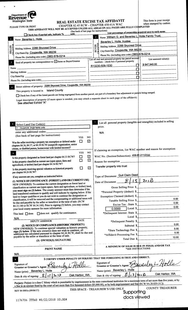 | Mailing Address: | PO BOX 813 OAK HARBOR, WA 98277 | % Ownership: | 100.0000000000% |